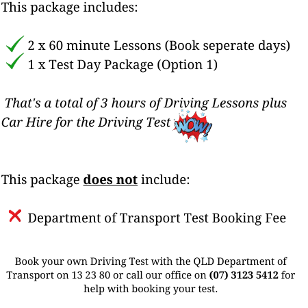 Package does not include transport department booking fee.